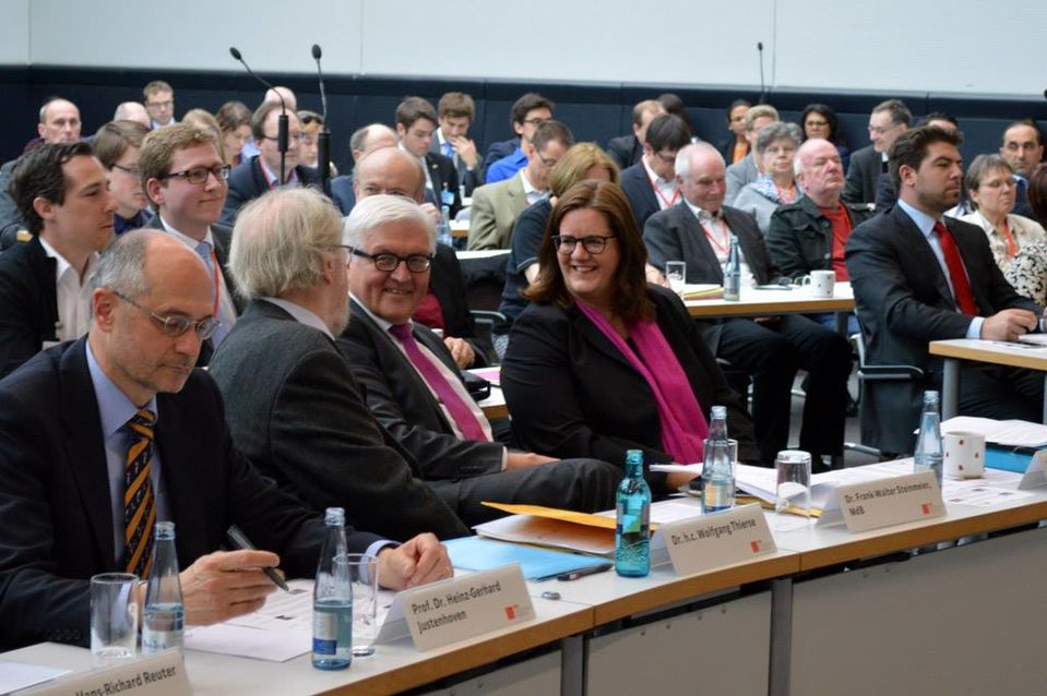 Sie zitierte in Ihrem Statement den Satz, den Frank-Walter Steinmeier prägte und der zugleich Untertitel der Tagung ist: „Die Welt ist aus den Fugen geraten“ und begrüßte den sichtlich erkälteten Bundesaußenminister, der es sich trotz seines Gesundheitszustandes nicht nehmen ließ, an der Veranstaltung teilzunehmen –wenngleich kürzer als geplant.